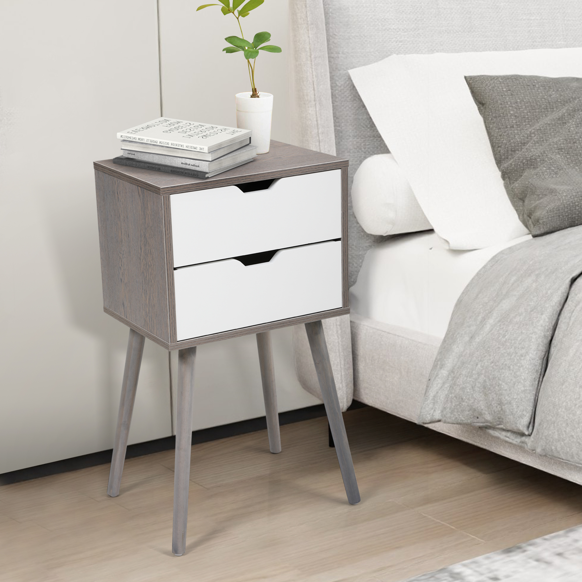 Set of 2 gray bedside tables featuring 2 drawers each for organized storage, ideal for bedroom and living room use.