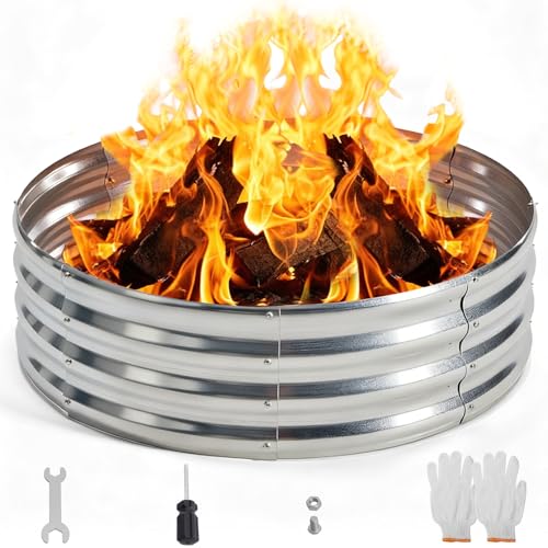 Durable 36-inch galvanized steel fire ring pit with foldable design for outdoor wood burning. Heavy-duty and portable for versatile outdoor use.