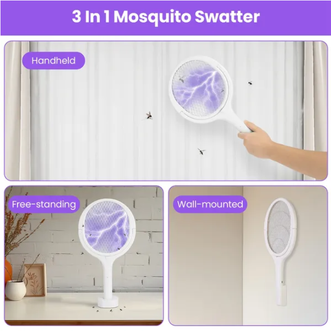 This 3-in-1 handheld electric pest control device combines multiple functionalities to effectively eliminate various pests. Designed for ergonomic use, it provides a portable and convenient solution for indoor and outdoor pest management. The electric mechanism ensures efficient pest eradication without the use of chemicals, promoting a safer environment. Suitable for controlling mosquitoes, flies, and other common insects, this device offers a practical alternative to traditional pest control methods. Lightweight and rechargeable, it enables extended use with minimal effort.