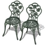 Durable 3-piece cast aluminum bistro set, ideal for small patios and cozy indoor spaces with weather-resistant finish.