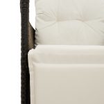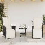 Elegant 3-piece black poly rattan bistro set with comfortable cushions, perfect for outdoor or indoor dining and relaxation.