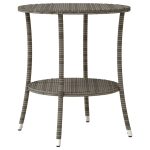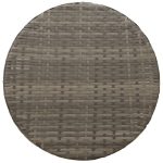 Compact 3-piece bistro set in grey poly rattan with comfortable cushions, ideal for outdoor dining and relaxation.