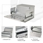 Are you unable to enjoy a short trip because of feeding chickens at home? Do you often forget to feed chickens and make them hungry? Let’s take a look at our PawHut Rainproof Outdoor Chicken Feeder. The 30 lbs. capacity feed can let 12 chickens eat for about a week, so that you can save money and time, and let the chickens enjoy buffet anytime. Our poultry feeder made is made of galvanized sheet and aluminum alloy which makes this automatic chicken feeder really strong and durable, weather proof to ensure feed drying. The comprehensive design of this outdoor chicken feeder for chickens, make your chickens grow healthily and lay eggs happily. Features: – The feeder is made of galvanized sheet and aluminum alloy, very sturdy – The product is weatherproof to ensure feed stays dry – Let your chickens get food at any time when they are hungry – Let chickens enjoy the process of eating securely and happily – Effectively reduce feed waste rate and save feed cost – Chickens weighing over 0.55 lbs. can open the lid – Release your time and never rush home to feed chickens every day. Specification: – Color: Silver – Material: Galvanized Steel, Aluminum – Overall Dimension: 16.5″ L x 22″ D x 11.25″ H – Top Rain-cover Size: 14.25″ L x 7.75″ D x 1.25″ H – Feeding Capacity: 30 LBS – Feeding Outlet Size: 13.5″ L x 3.25″ D x 3.25″ H – Rain-cover Size: 14.25″ L x 4″ D x 1″ H – Baffle: 6.5″ W (Upper), 4.75″ W (lower) – Pedal Size: 16.5″ L x 16.9″ D x 0.6″ H – Treadle Above Ground: 3.75″ – Net Weight: 9.24 lbs Package Includes: 1 x Chicken Feeder 1 x Manual Are you unable to enjoy a short trip because of feeding chickens at home? The 25 lbs. capacity feed can let 10 chickens eat for about a week, so that you can save money and time, and let the chickens enjoy buffet anytime. Specification: – Color: Silver – Material: Galvanized Steel, Aluminum – Overall Dimension: 16.5″ L x 20″ D x 11.25″ H – Top Rain-cover Size: 14.25″ L x 6″ D x 1.25″ H – Feeding Capacity: 25 LBS – Feeding Outlet Size: 13.5″ L x 3.25″ D x 3.25″ H – Rain-cover Size: 14.25″ L x 4″ D x 1″ H – Baffle: 6.5″ W (Upper), 4.75″ W (lower) – Pedal Size: 16.5″ L x 16.9″ D x 0.6″ H – Treadle Above Ground: 3.75″ – Net Weight: 9.24 lbs Package Includes: 1 x Chicken Feeder 1 x Manual.