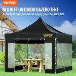 Durable 304.8×304.8 cm pop up canopy tent with UV-resistant, waterproof fabric, removable sidewalls, and wheeled bag for outdoor parties and garden use.