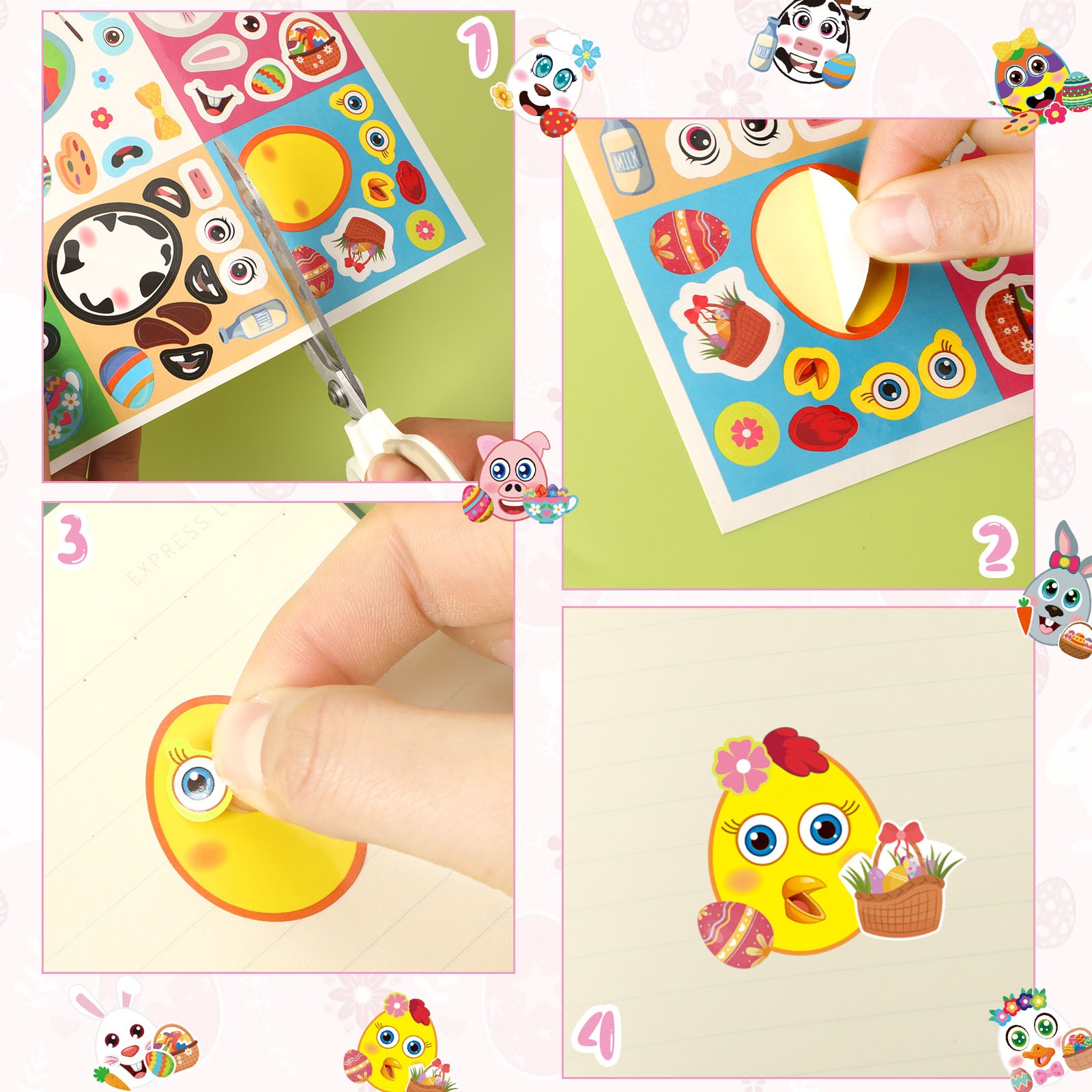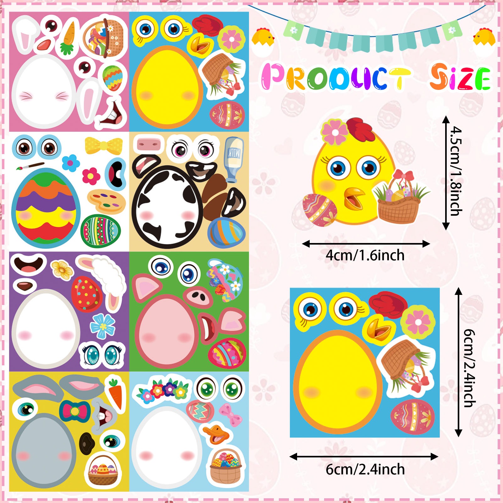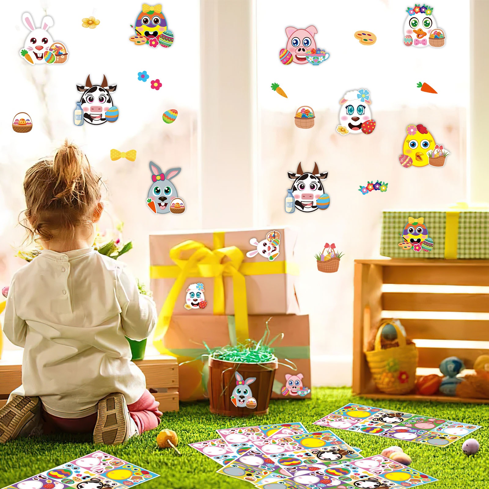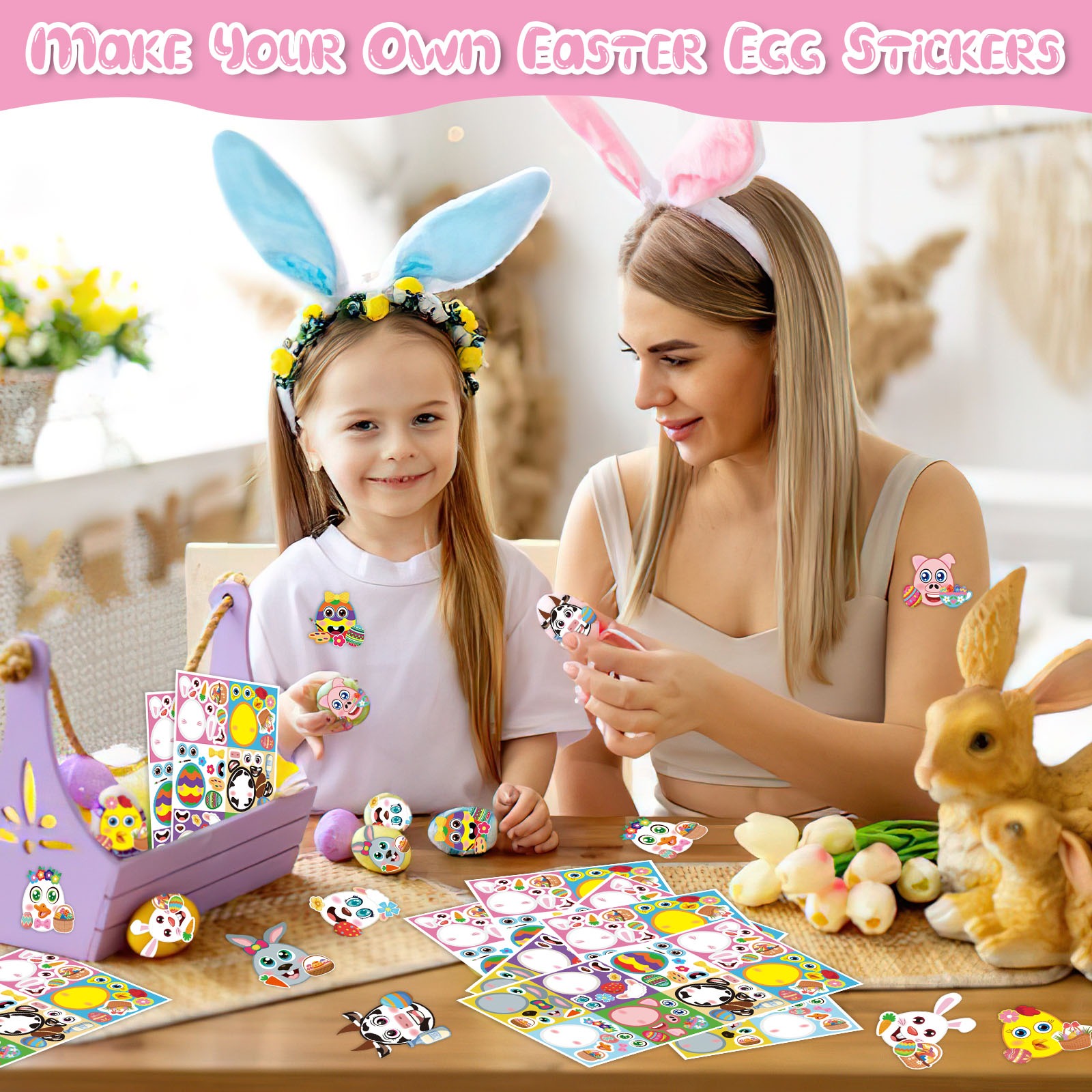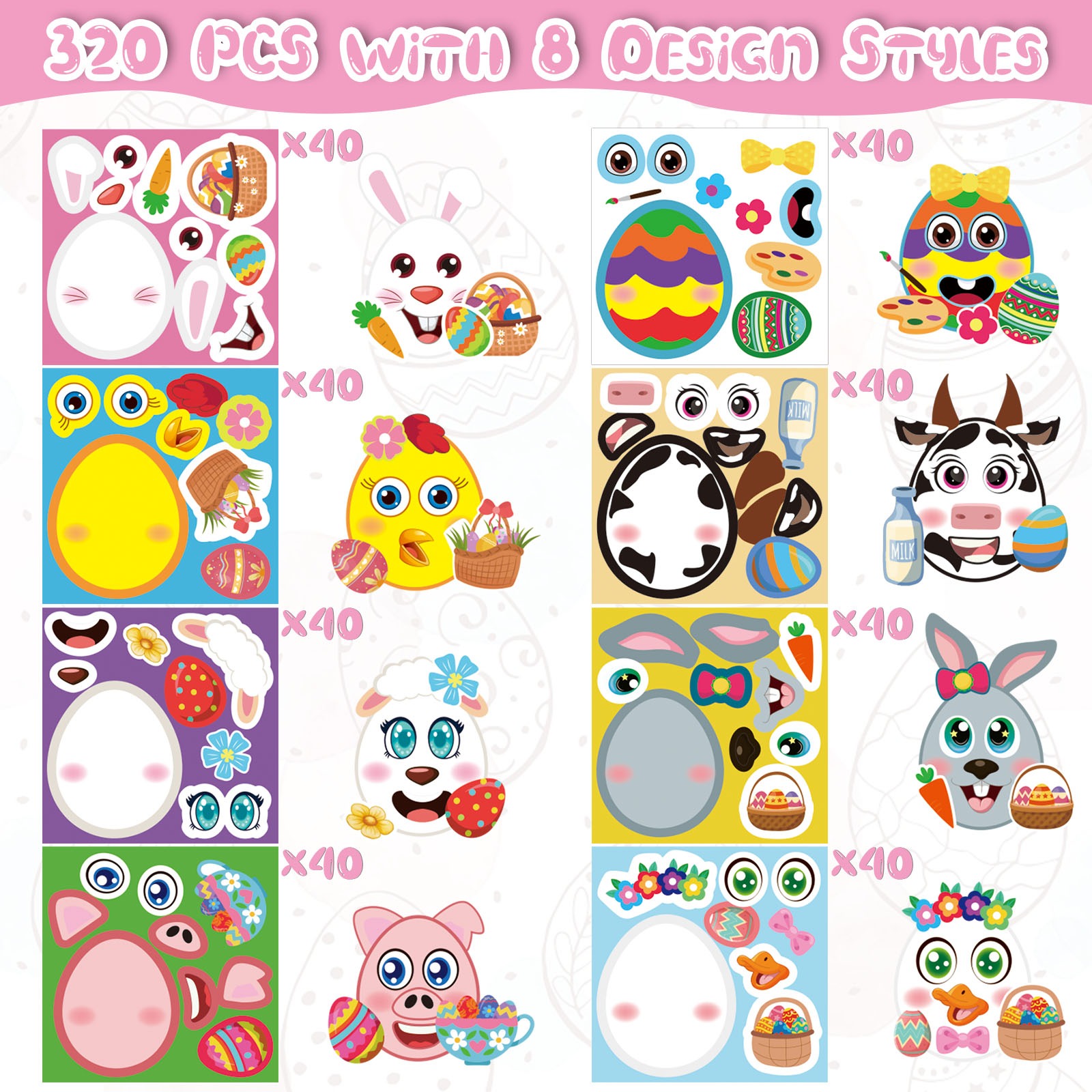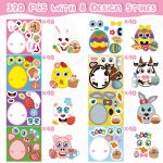 Set of 320 colorful Easter egg animal face stickers, perfect for DIY projects, party favors, school goody bags, and Easter basket stuffing.