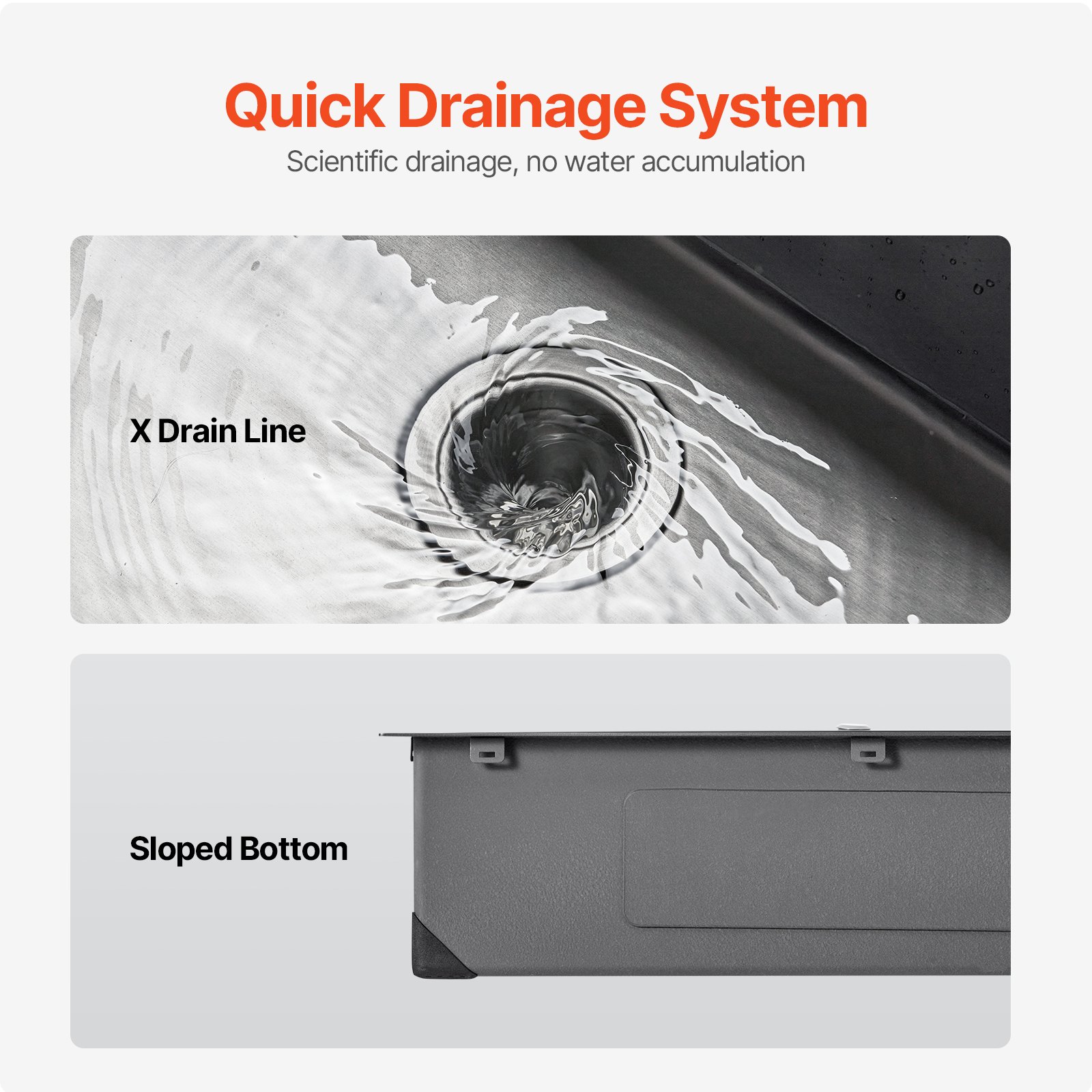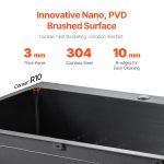 This 33-inch kitchen sink features a single bowl design with a top mount, ensuring easy installation. Crafted from high-quality stainless steel with a sleek black finish, it offers excellent durability and resistance to corrosion. The drop-in basin provides ample space for washing and food preparation, making it a practical addition to any kitchen. Its modern appearance complements various interior styles while maintaining functionality and ease of maintenance.