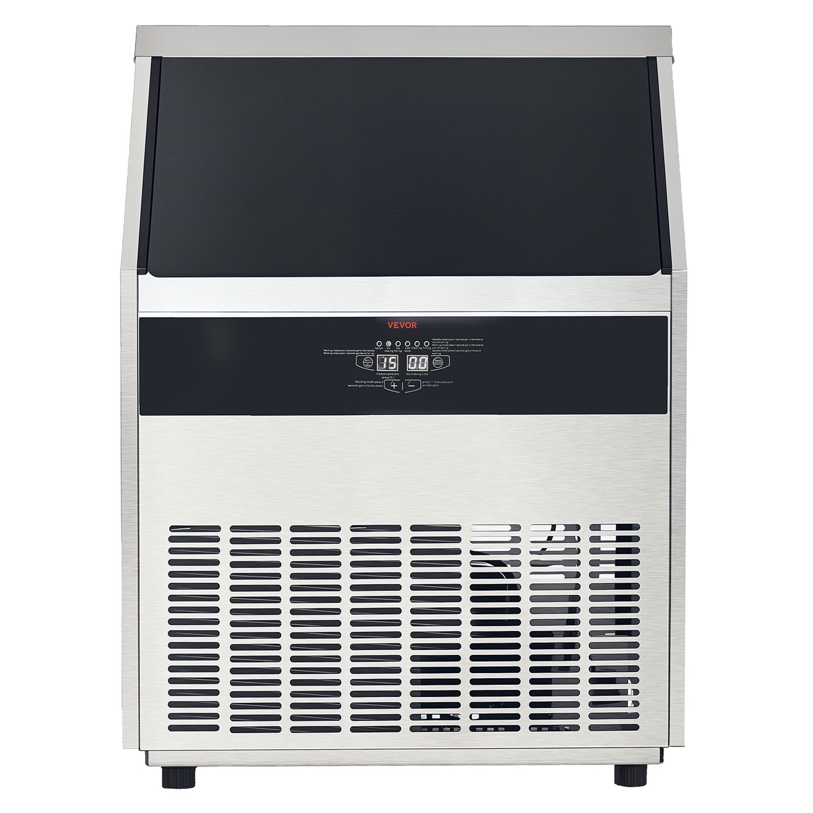 This commercial ice maker delivers up to 360 pounds of ice within 24 hours, making it ideal for bars, offices, and restaurants. Equipped with an 88-pound storage capacity, it ensures a consistent supply of ice. The machine produces 160 ice cubes every 15 minutes, enhancing operational efficiency. Featuring a LED digital display for easy monitoring and control, it also integrates a drain pump for convenient water discharge. The unit is freestanding and includes a self-cleaning function to maintain hygiene and prolong equipment life.