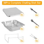 Complete 36-piece disposable chafing dish set with half-size food pans, covers, and utensils, ideal for parties, BBQs, and catering events.