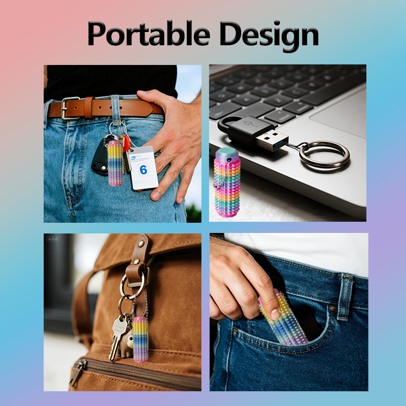 Compact 3D spiked keychain designed for stress relief, palm massage, and improving mental clarity and focus.