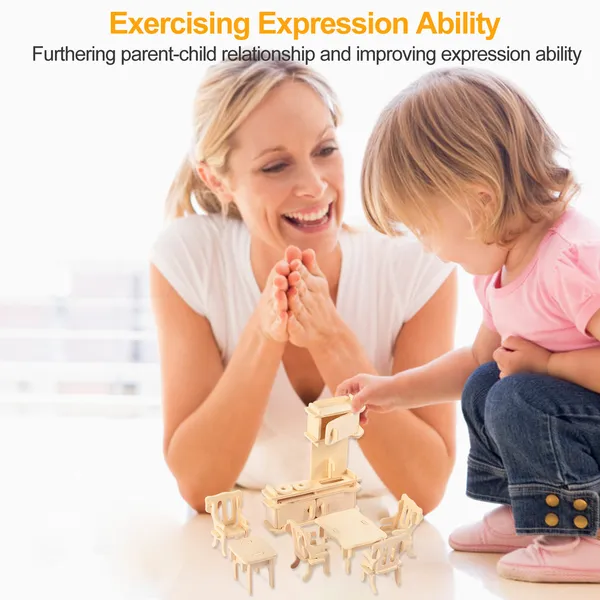 This 3D wooden dollhouse furniture puzzle set includes intricately designed miniature models for assembly. Crafted from high-quality wood, the set offers various furniture pieces that can be built as a DIY activity. Ideal for dollhouse decoration or collecting, each puzzle provides a detailed and realistic miniature representation, promoting creativity and fine motor skills during assembly. The compact size is perfect for display or play within dollhouses or as stand-alone decorative items.
