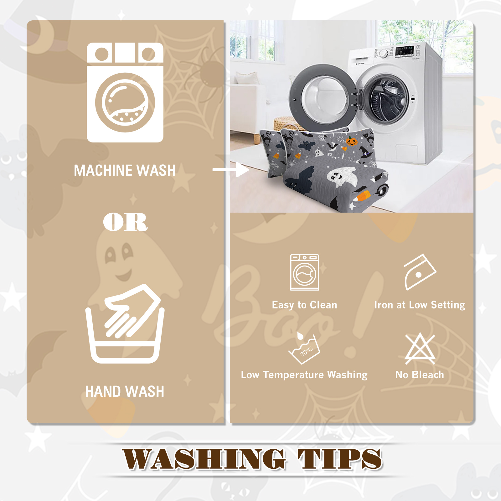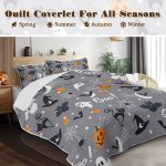 Lightweight Halloween bedding set featuring a pumpkin design, includes 1 coverlet and 2 pillowcases, perfect for girls, boys, and women.