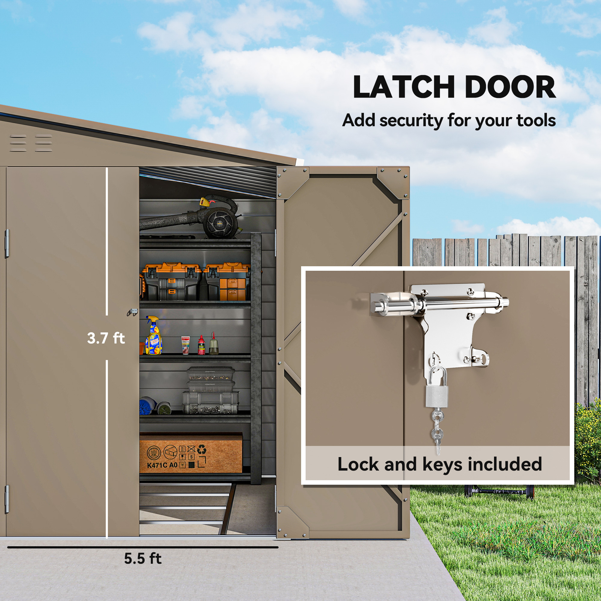 This 4.6 foot by 9 foot outdoor storage shed offers ample space to organize and protect gardening tools, patio equipment, and seasonal items. Manufactured with durable, weather-resistant materials, the shed ensures long-lasting performance in diverse environmental conditions. Its compact yet spacious design fits conveniently in most outdoor spaces, providing secure and accessible storage solutions. The shed features a robust frame and secure locking doors to safeguard contents from weather and unauthorized access.
