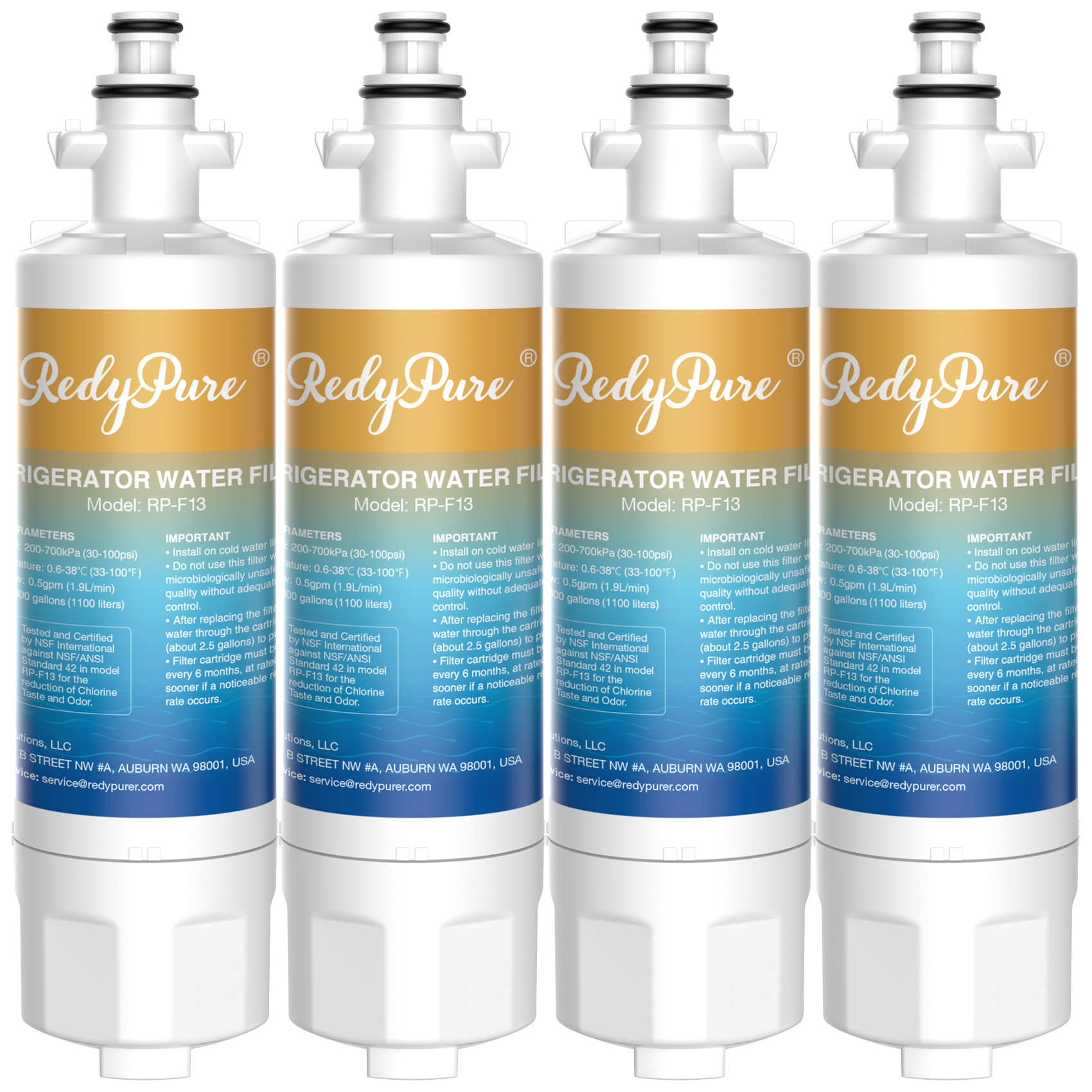 High-quality 4-pack Redypure water filters compatible with LG LT700P, Kenmore 469690, and related models for pure, fresh refrigerator water.