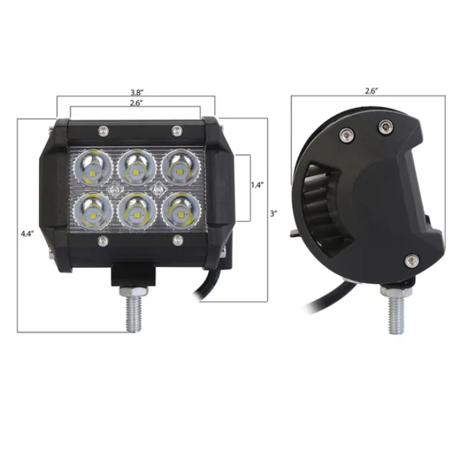 This set includes 4 pieces of 4-inch dual row LED spot light pods, each delivering 18 watts of high-intensity light. Designed with a robust cube shape, these LED lights provide focused illumination suitable for automotive, off-road, and utility uses. The dual row configuration enhances lighting efficiency and brightness while maintaining a compact profile. Built to withstand harsh conditions, these LED pods offer long-lasting performance with energy-efficient operation.