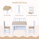 Discover the Qaba children’s furniture set, perfect for the bedroom, living room or nursery. This complete set includes a table, two chairs and a bench with built-in storage space, ideal for organizing toys and books. Made from sturdy pine wood, it’s designed for children aged 3 and over. Easy to assemble and clean, this set is the ideal solution to accompany your children’s daily activities, combining safety, comfort and practicality. Features: – For kids’ bedroom, playroom, or living room – Kids work activity set includes a table, 2 chairs, and a storage bench – Provides a convenient storage space for organizing books, toys, snacks – Made from thick pine panels – Great gift for kids ages 3 years and up – Easy to assemble and clean Specification: – Color: Gray and White – Materials: Pinewood, MDF – Table Size: 23.5″ L x 19.75″ W x 19″ H – Chair Size: 9.8″ L x 11.4″ W x 21.7″ – Bench Size: 23.5″ L x 11.75″ W x 21.75″ H – Storage Space: 20.5″ L x 8.75″ W x 8.75″ H – Suitable Age: 3 years and up – Weight Capacity (table, chair and bench): 55 lbs. – Item Label: 312-001GY Package Includes: – Table x 1 – Chair x 2 – Bench x 1 – Manual x 1 Need a dedicated area for your kids to do their activities? Qaba provides an excellent place for your kids to do homework, create art projects, and enjoy meals. The toddler table and chair set is two chairs and a table, made with durable for long-lasting pinewood and MDF board. Thanks to the minimalist design, this activity set will be easy to add alongside any existing kid room décor. Get your kids a fun and safe place to draw, play or eat with this Qaba kids table and chairs set. Features: – Ideal for kids’ bedroom, playroom, or living room – Includes 3-piece kids side set, a table, two chairs – Made from sturdy and robust construction – Minimalist style – Cylindrical shaped leg design prevents kids from injury – Suitable for kids ages 2 to 5 years old – Easy to assemble and clean – Certified by ASTM F961-17, CPSIA Specification: – Color: Grey – Materials: Pinewood, MDF – Table Size: 21.75″ L x 13.5″ W x 16.5″ H – Chair Size: 10.25″ L x 11″ W x 20.5″ H – Suitable Age: 2 to 5 years old – Weight Capacity (table): 66 lbs. – Weight Capacity (chair): 110 lbs. – Certification: ASTM F961-17, CPSIA Package Includes: – x 1 Table – x 2 Chair – x 1 Instruction Manual This Qaba kids table and chair set will be a great addition to any child’s room. Comes complete with 2 chairs, a table, and a storage bench. Made from pinewood, this set is durable for long-lasting use. The storage bench can be useful for storing items under the lift-up seat. This table and chair set is the perfect birthday or Christmas gift for your kid, as they will find a variety of uses from creating art, doing homework, or enjoying meals. Features: – Ideal for kids’ bedroom, playroom, or living room – Kids work activity set includes a table, 2 chairs and a storage bench – Provides a convenient storage space for organizing books, toys, snacks – Made from thick pine panels – Great gift for kids ages 3 years and up – Easy to assemble and clean – Certified by ASTM F963-17, CPSIA Specification: – Color: Natural and White – Materials: Pinewood, MDF – Table Size: 23.5″ L x 19.75″ W x 19″ H – Chair Size: 9.75″ L x 9.75″ W x 21.75″ H – Bench Size: 23.5″ L x 11.75″ W x 21.75″ H – Storage Space: 20.5″ L x 8.75″ W x 8.75″ H – Suitable Age: 3 years and up – Weight Capacity (table, chair and bench): 55lbs – Certification: ASTM F963-17, CPSIA – Table x 1 – Chair x 2 – Bench x 1 – Manual x 1.