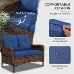 This 4-piece outdoor patio furniture set features durable PE rattan construction designed to withstand various weather conditions. The set includes a sofa, two armchairs, and a coffee table, each crafted for comfort and longevity. Soft, weather-resistant cushions provide added relaxation while complementing the sleek, woven design. Easy to clean and maintain, this patio collection enhances any outdoor space with both style and functionality, making it ideal for social gatherings or quiet leisure.