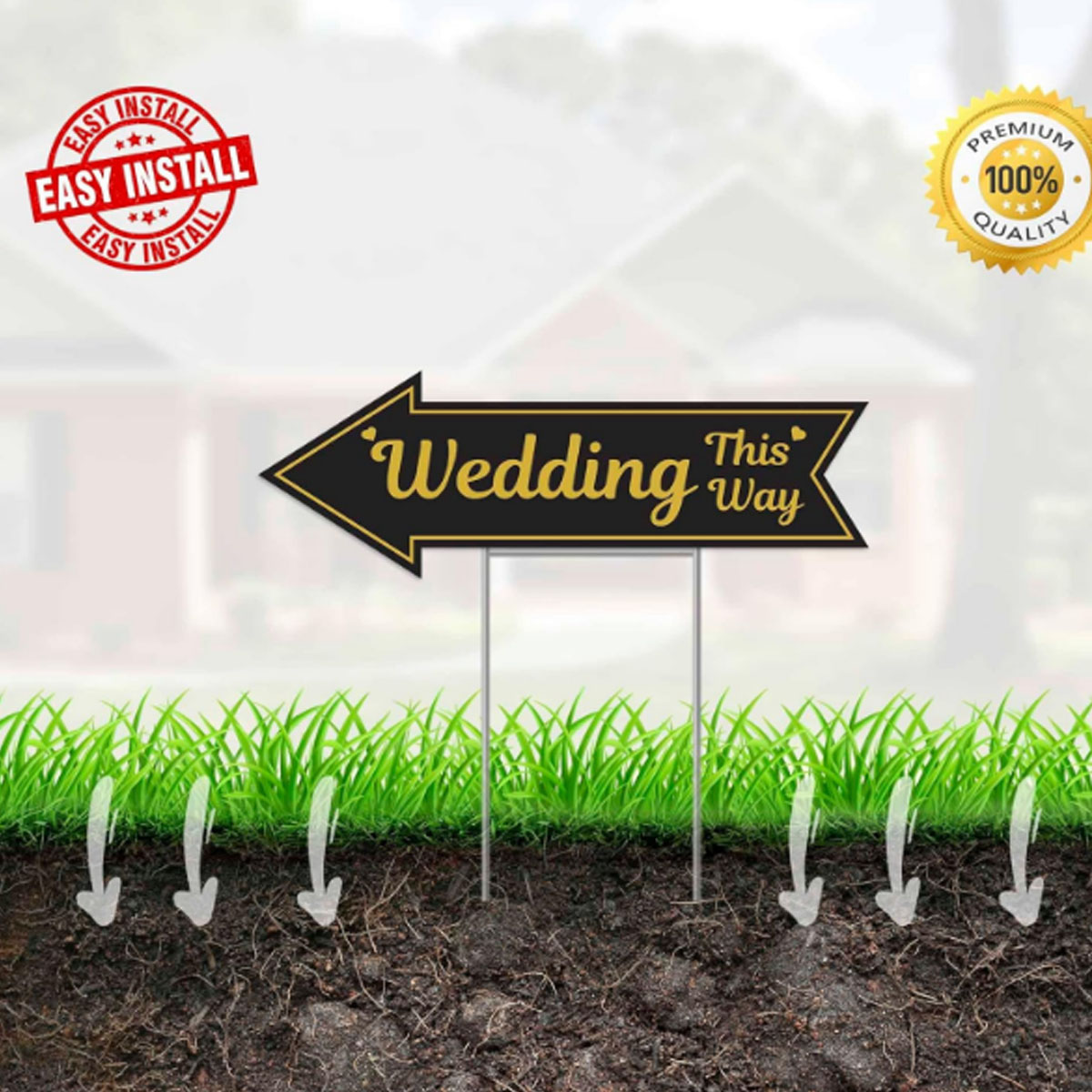 Decorate your wedding venue with a set of 4 stylish yard signs, perfect for outdoor celebration and directional guidance.
