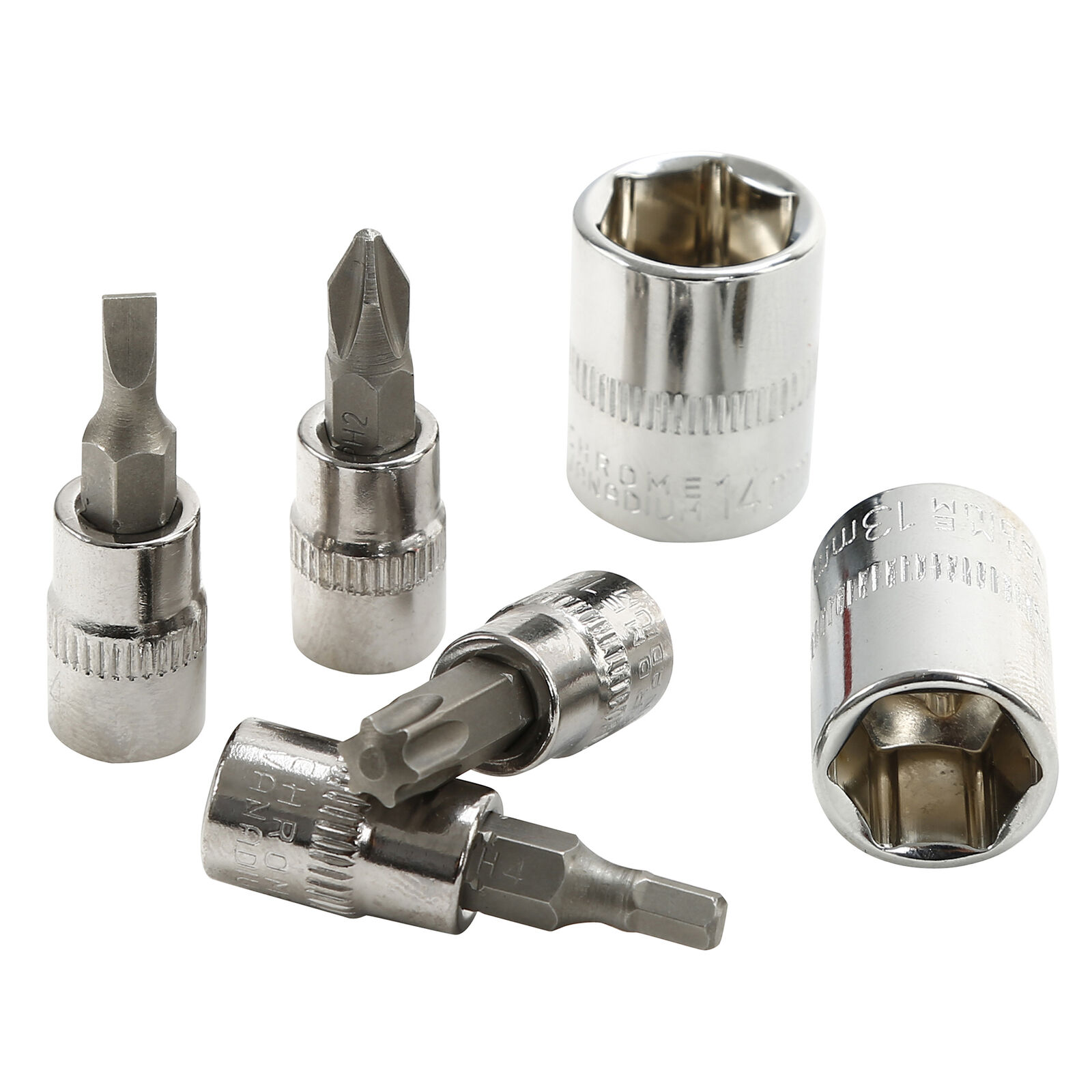 13PCS – 1/4″” DR SOCKETS: 4, 4.5, 5, 5.5, 6, 7, 8, 9, 10, 11, 12, 13, 14MM