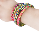 This set features four woven bracelets in a burnished gold finish, each designed with vibrant colors to add a lively accent to your wristwear collection. The bracelets boast a durable woven texture combined with a subtle metallic sheen, ensuring both style and resilience. Ideal for layering or wearing individually, these bracelets complement a variety of outfits and occasions with their unique blend of color and polished gold tone.