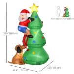 Festive 5.9ft inflatable Christmas tree featuring Santa Claus, dog, and LED lights, perfect for home, garden, lawn decoration both indoors and outdoors.