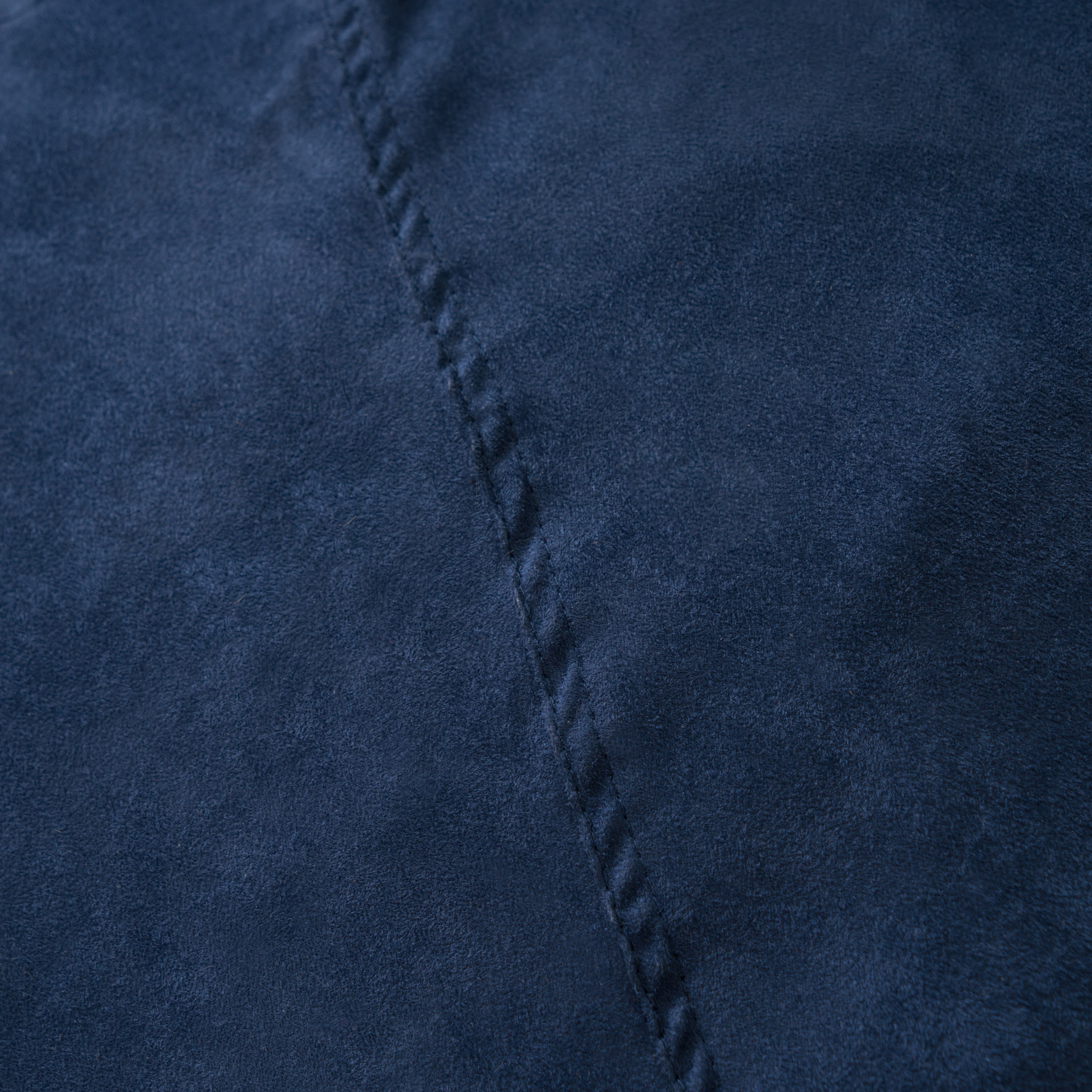 Comfortable 5-foot shredded foam bean bag chair with midnight blue microsuede cover, ideal for reading and lounging in bedrooms.