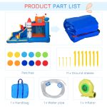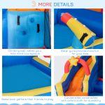 This jumping castle from Outsunny provides a thrilling immersion of water play and bouncing. From making a trampoline zone, and letting kids practice aim, to enjoying a water cannon that enhances the pool excitement, this kids play house lets friends and siblings go wild and burn some energy. The climbing wall up to the slide adds healthy exercise, building not only strength but the confidence of reaching the top and the joy of riding down to a splash. Features: – Five activities, including a slide, climbing wall, trampoline, pool, and water cannon – Big, fun 90.5″ slide – Climbing wall offers a fun, rewarding challenge that builds strength and confidence – Crayon water cannon for extra fun – Quick 2 min. inflation – Weather-resistant fabric for survival outdoors – Multiple elements to offer something for everybody – Ages 3-8 Specification: – Color: Bold Red, Ocean Blue, Sun Yellow, Orange, White – Material: Oxford Fabric – Overall Dimensions: 133.75″ L x 106.25″ W x 89.25″ H – Trampoline Dimensions: 56.75″ L x 55″ W – Pool Dimensions: 61.75″ L x 59″ W – Climbing Wall Dimensions: 33″ L x 32.25″ W – Sliding Dimensions: 90.5″ L x 21.25″ W x 48.75″ H – Maximum Load: 198 lbs. – Power of Inflator: 450W – Certifications: ASTM F963, CPSIA, UL/ETL/CSA – Item label: 342-051V80 – Note: The blower will bring about 75 dB sound but it will not produce noise. Package Includes: – 1 x Handbag – 1 x Water Pipe – 1 x Inflatable House – 1 x Set of Ground Stakes – 1 x Set of Patches – 1 x Manual.