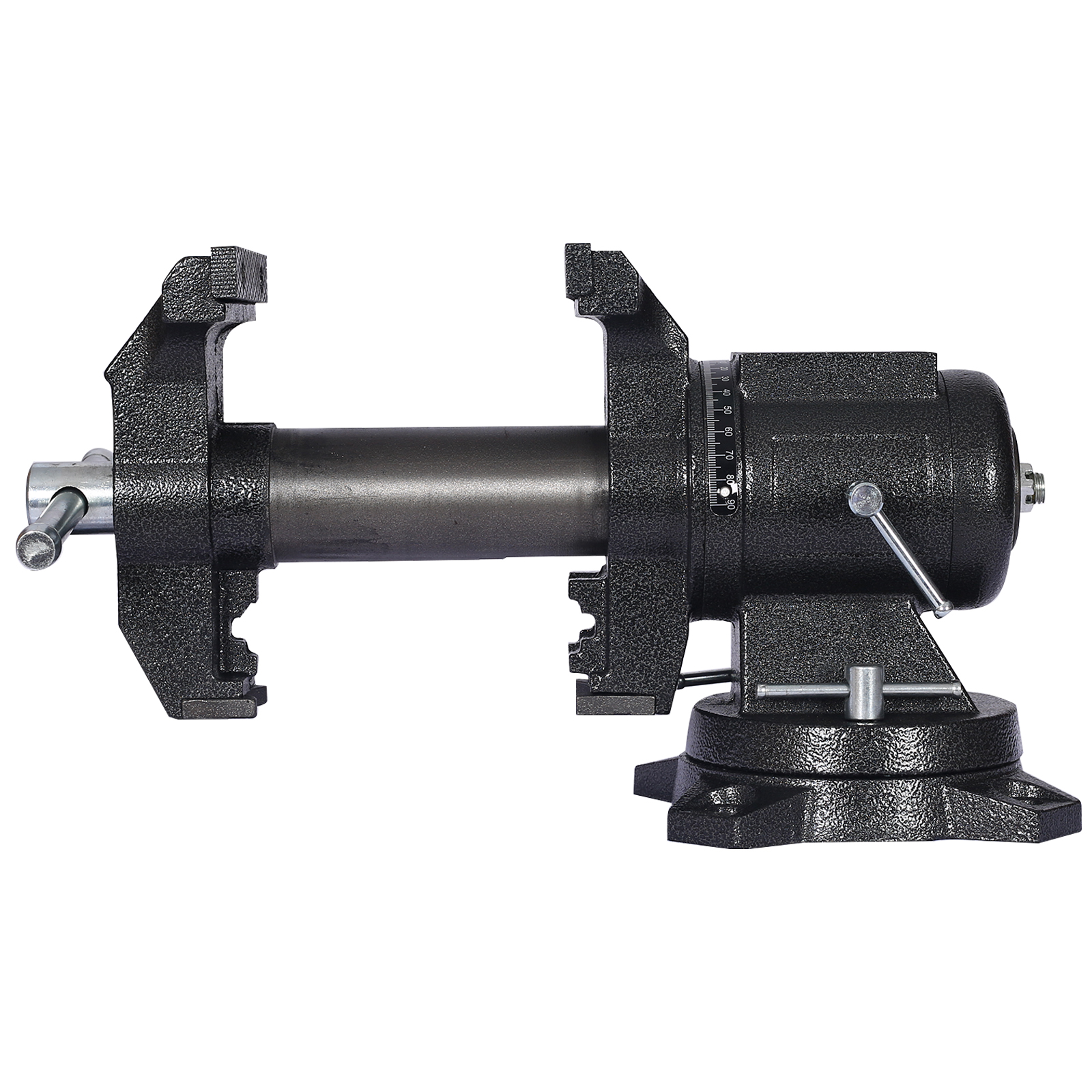 Durable 5-inch multi-jaw bench vise featuring 360° rotation and clamp-on swivel base for versatile clamping and secure hold.