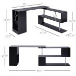 Modern 55″ L-shaped corner desk featuring 360° rotation and three-tier storage shelves, ideal for home office or workstation setups.