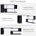 This 55-inch L-shaped corner computer desk combines modern design with practical functionality. It features a full 360-degree rotating mechanism, allowing flexible workspace orientation to maximize comfort and accessibility. Constructed for home office use, the desk integrates three-tier storage shelves that provide organized space for books, office supplies, and accessories. Its compact corner design fits efficiently into various room layouts, enhancing productivity while maintaining a streamlined aesthetic. Durable materials and sturdy construction ensure long-term use, making it a versatile workstation solution.