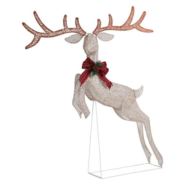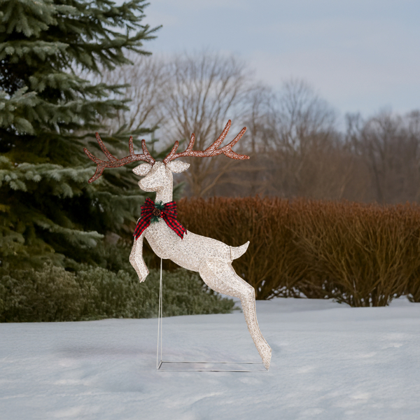 5-foot lighted jumping reindeer with warm white LED lights for indoor and outdoor holiday décor.