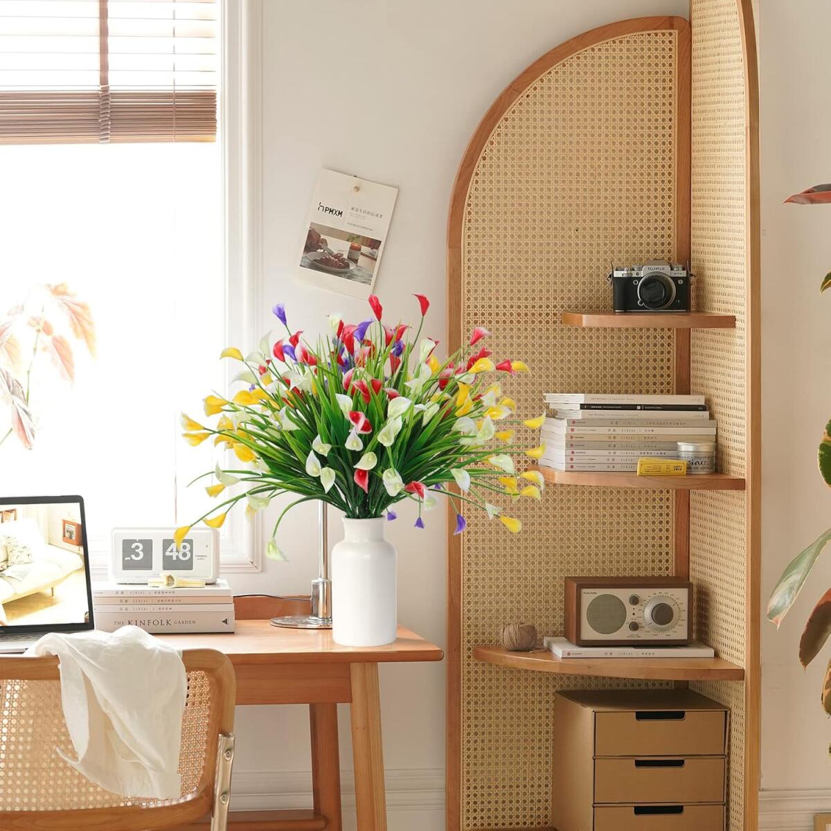 This set includes five artificial Calla Lily stems, meticulously crafted to replicate the natural appearance of real flowers. Each stem features finely detailed petals and lush green leaves, providing a lifelike touch to any interior space. Made from high-quality materials, these faux lilies are durable and maintenance-free, making them ideal for home, office, or special event decoration. Their versatile design complements various decor styles, adding an elegant floral accent without the need for watering or sunlight. The bundled set offers a convenient way to enhance your space with timeless floral beauty.