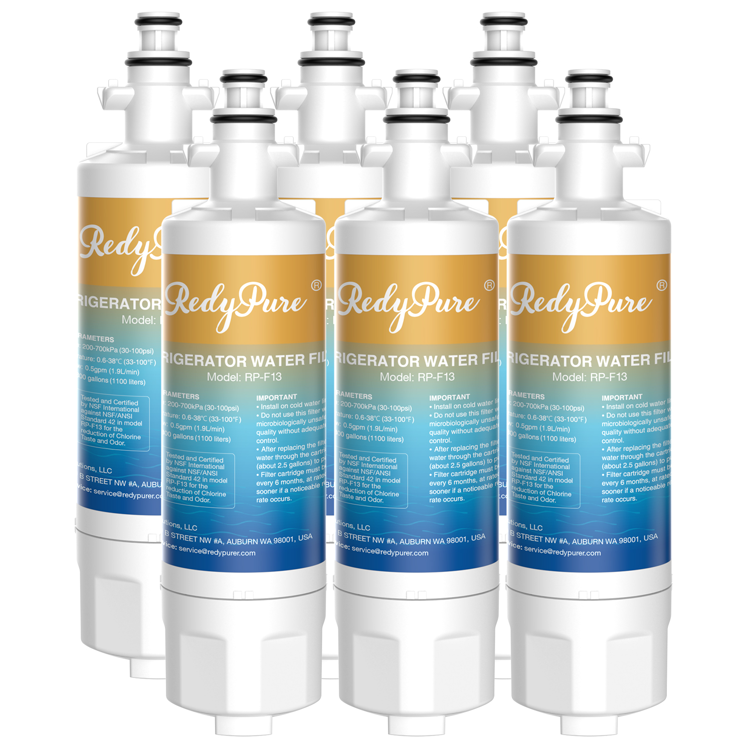 Six Redypure water filter replacements compatible with LG LT700P, Kenmore 469690, and more for pure, fresh-tasting water.
