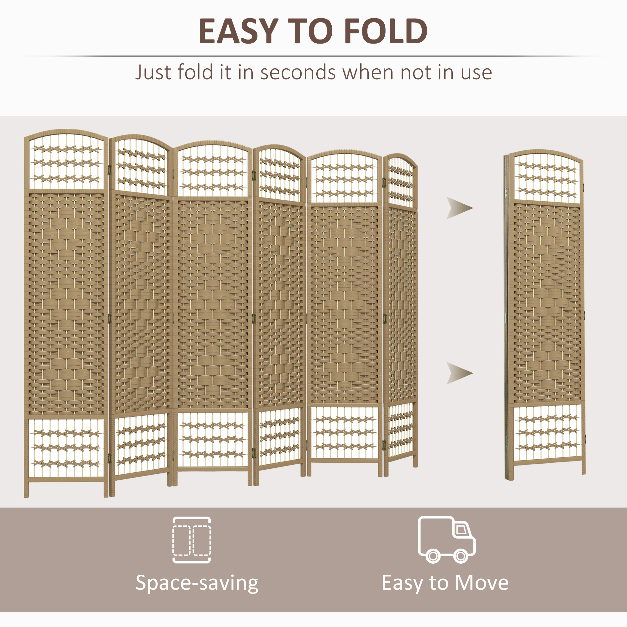 Portable 6-panel folding room divider with natural wave fiber design for privacy and space partitioning in home or office settings.