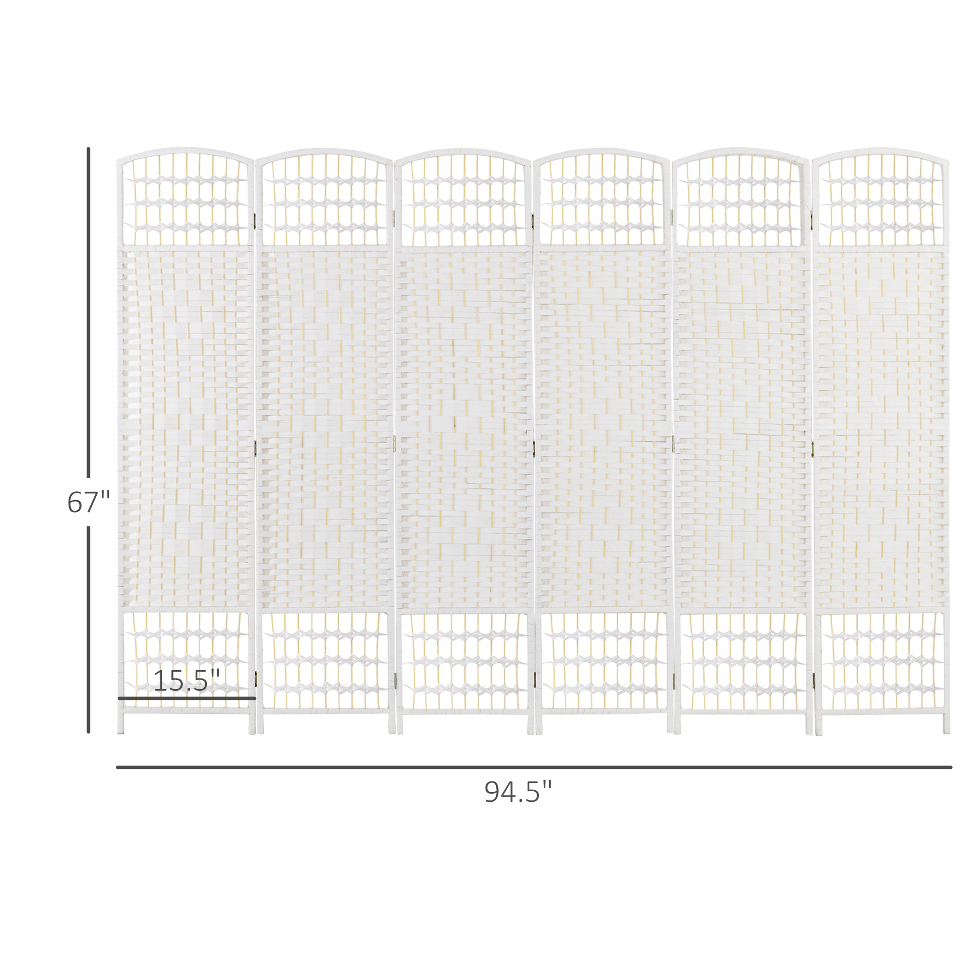 Portable 6-panel folding room divider in white wave fiber for privacy and space partitioning in home or office environments.