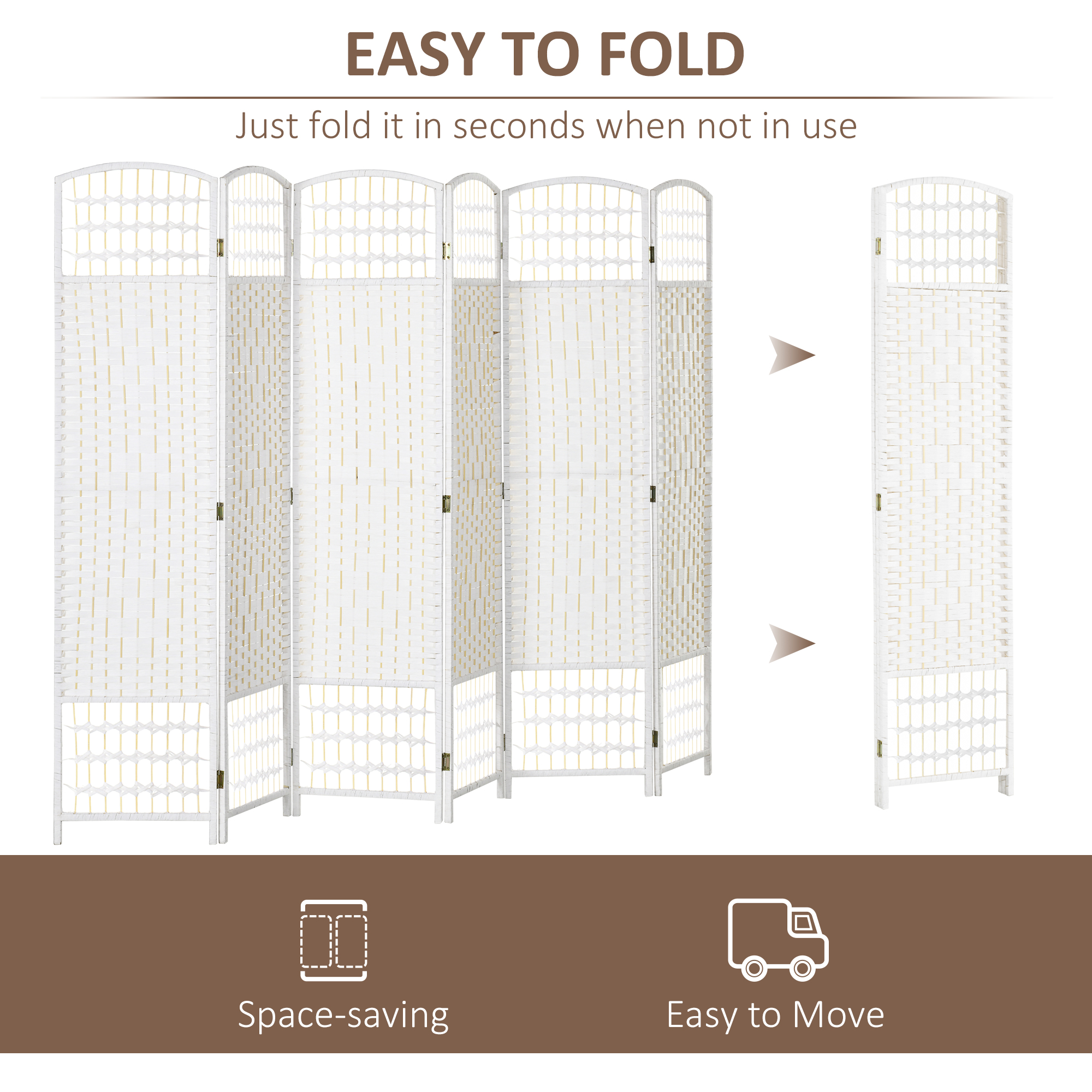 - – Folding design with six panels and fifteen metal hinges that make it easy to create a new look and ensure space-saving storage