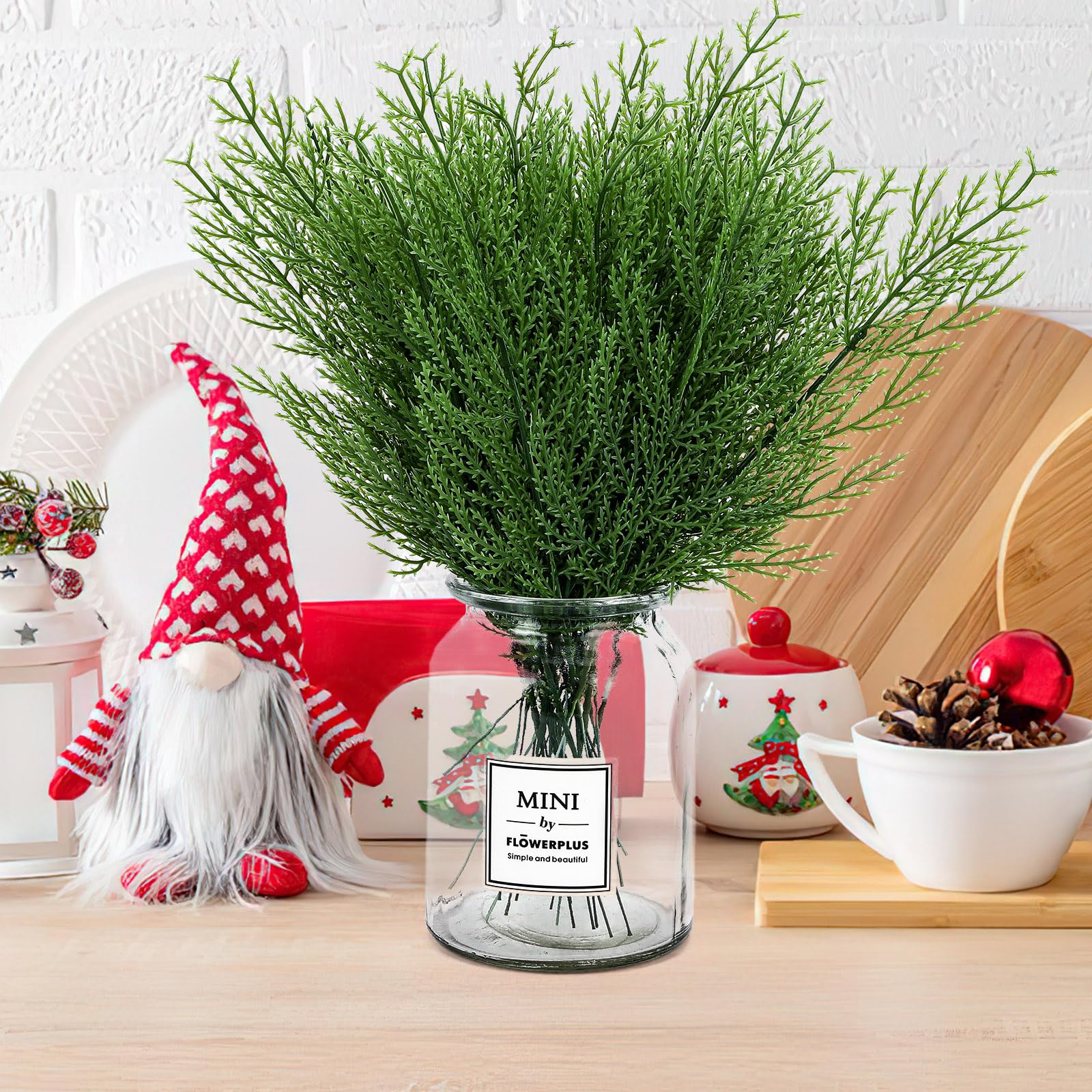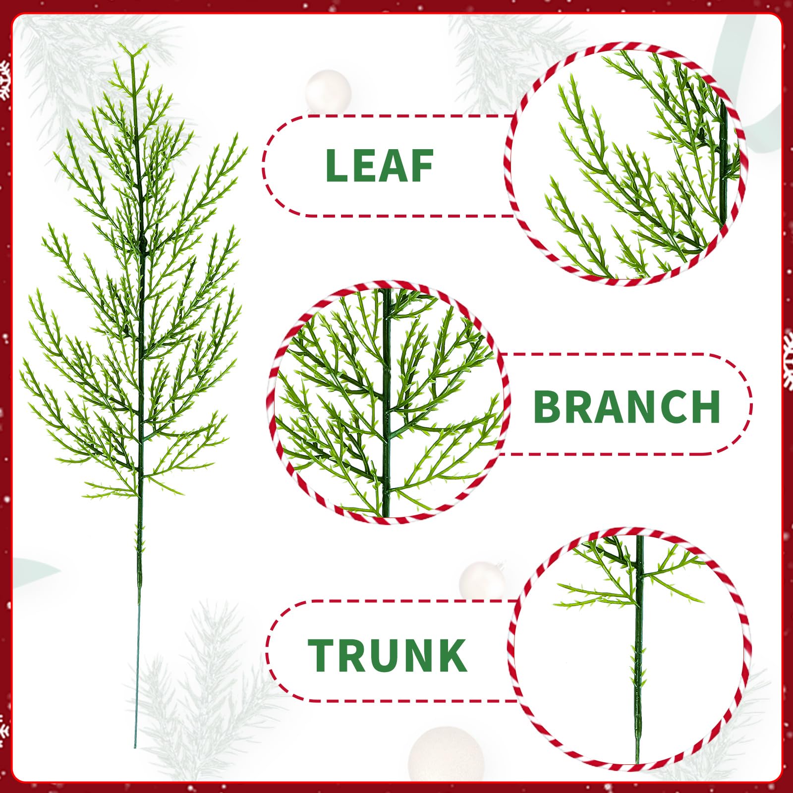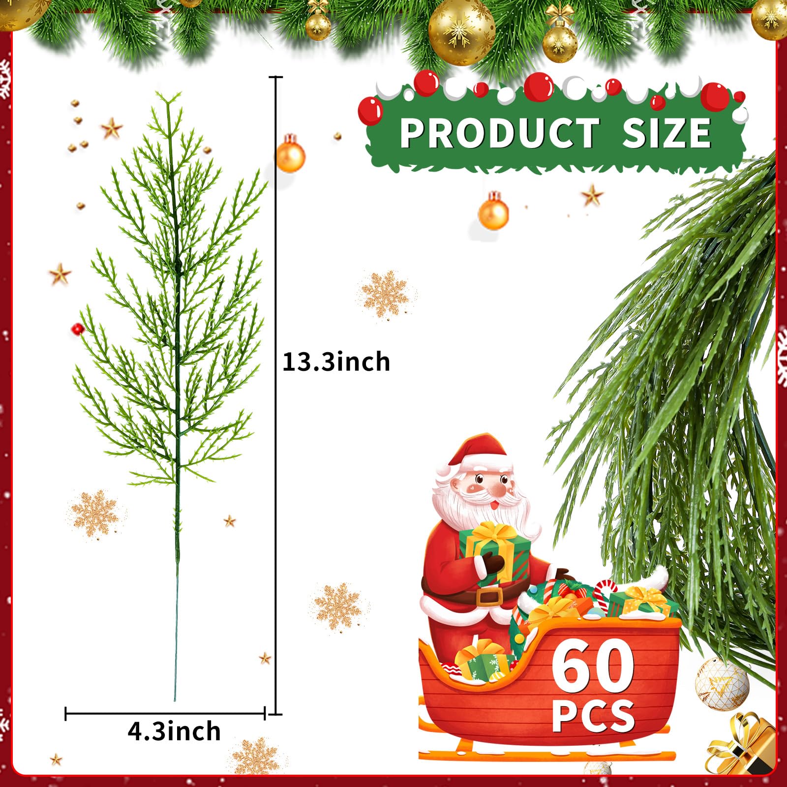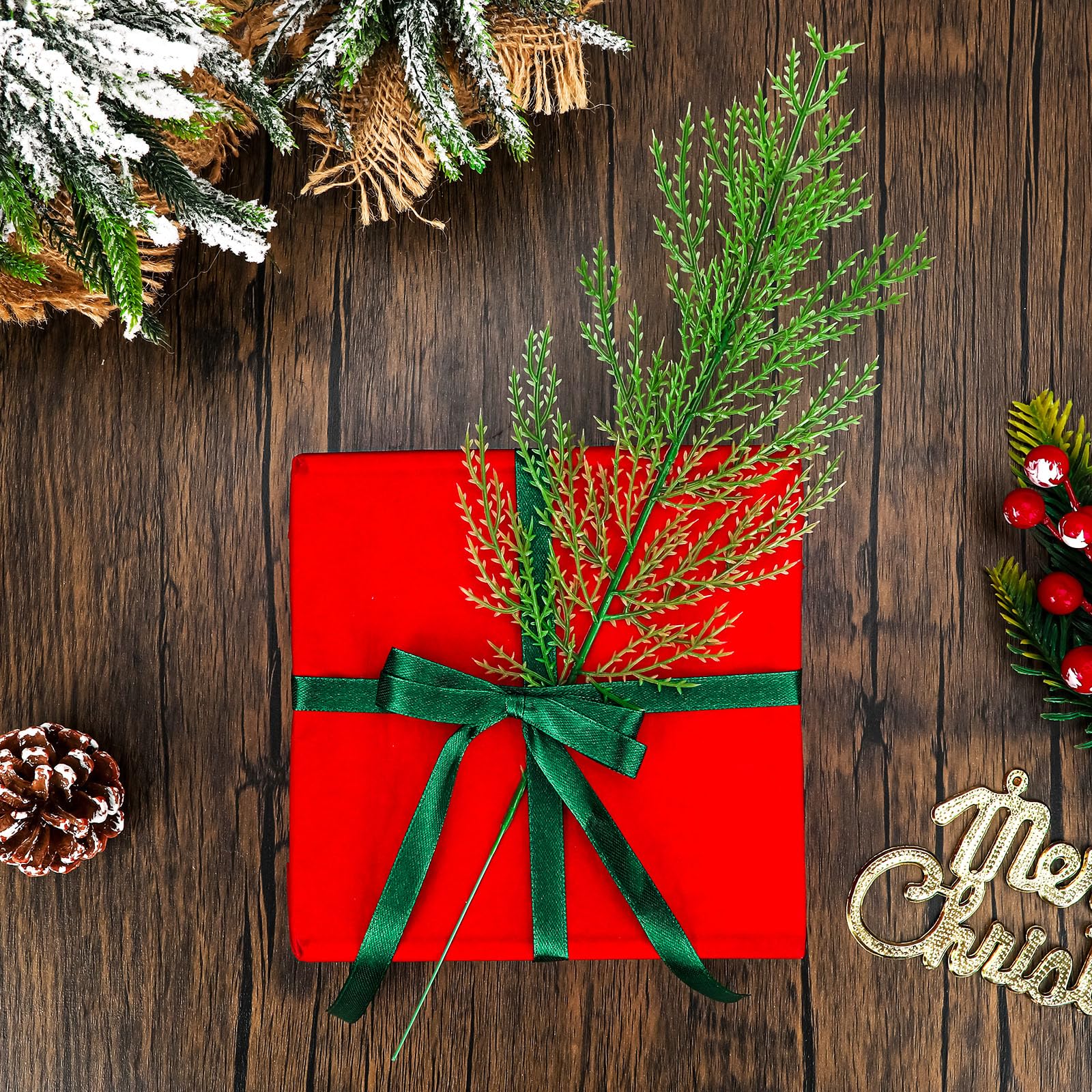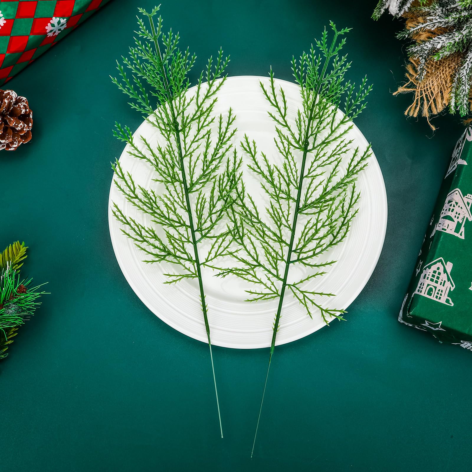 This collection includes 60 artificial branches comprising pine, cedar, and snow pine varieties designed for festive decoration. Crafted from high-quality materials, each branch replicates natural foliage with realistic textures and colors. Suitable for DIY projects, these stems are perfect for creating garlands, wreaths, centerpieces, and other holiday decorations. Their versatile design complements kitchen, family room, or general home decor during the Christmas season, offering a convenient and reusable alternative to real greenery.