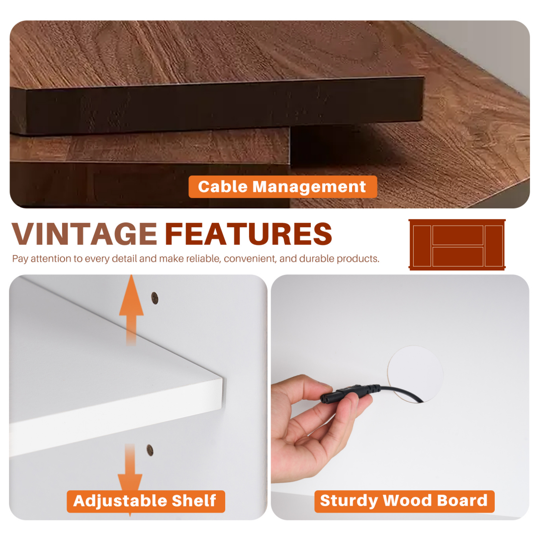 - Sturdy and Durable: Crafted with premium waterproof and scratch-resistant engineered wood, this entertainment center is built to last. The reinforced vintage-style desktop supports up to 300 lbs, making it perfect for large TVs up to 65 inches. A durable, family-friendly TV console ideal for any living room.