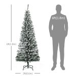 This 6-foot pencil Christmas tree is designed with flocked green branches that provide a natural, snow-dusted appearance. The tree features realistic branch tips that enhance its visual appeal, making it a perfect addition to holiday décor. Equipped with a sturdy folding metal stand, it allows for convenient assembly and compact storage. Its slim silhouette suits smaller spaces while maintaining a festive atmosphere.