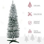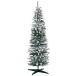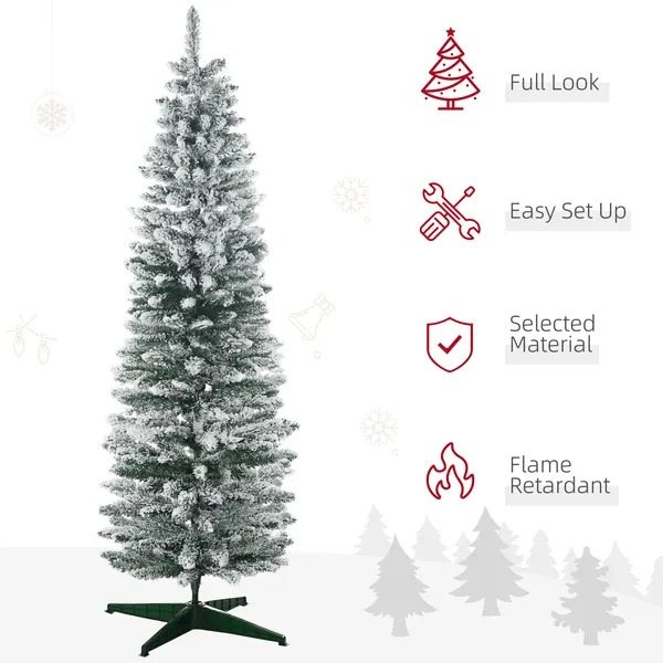 6ft tall pencil artificial Christmas tree featuring green snow flocked branches, perfect for holiday decoration.