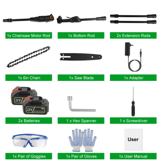 Be the first to review “6in Cordless Pole Saw 7.4FT Maximum Extendable Length 35FT S Speed Electric Pole Chainsaw 2Pcs 3.0Ah Batteries And Charger Included For Pruning Trimming” Cancel reply