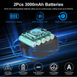 This 6-inch cordless pole saw features a maximum extendable length of 7.4 feet, allowing for efficient pruning and trimming of hard-to-reach branches. Powered by an electric motor with a cutting speed of 35 feet per second, it delivers consistent performance without the noise and emissions of gas models. The package includes two 3.0Ah rechargeable batteries and a charger, providing extended runtime for uninterrupted work. The lightweight design enhances maneuverability, while the cordless operation ensures ease of use in various outdoor environments.