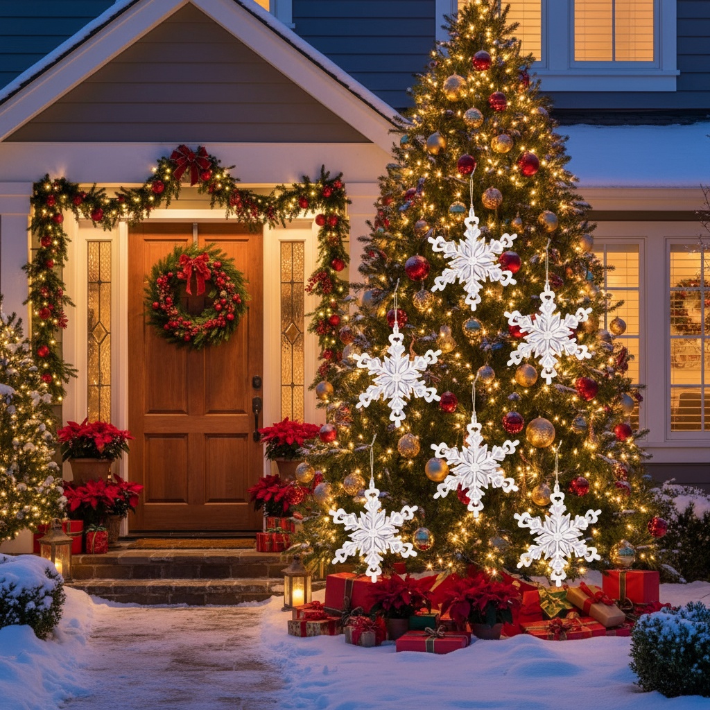 This set includes six iron snowflake ornaments, each sized at 6.3 x 1.8 x 6.7 inches, designed for hanging on Christmas trees. Crafted from durable iron material, these decorations provide a stylish and sturdy accent for holiday celebrations. The iron hanger allows for easy attachment to various surfaces, making them ideal for Xmas parties and festive home décor. Their intricate snowflake design brings seasonal charm and elegance, enhancing the holiday ambiance.