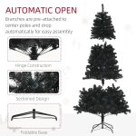 7.5ft black artificial Christmas tree featuring auto-open design and sturdy steel base for easy setup and durability.