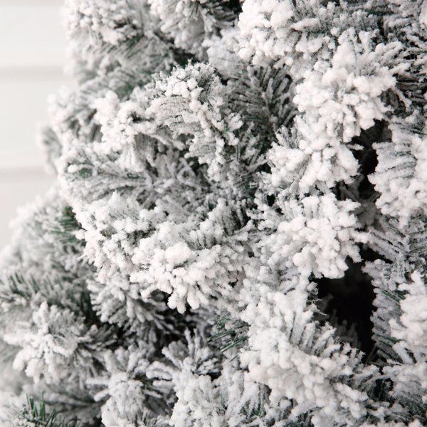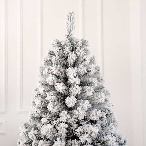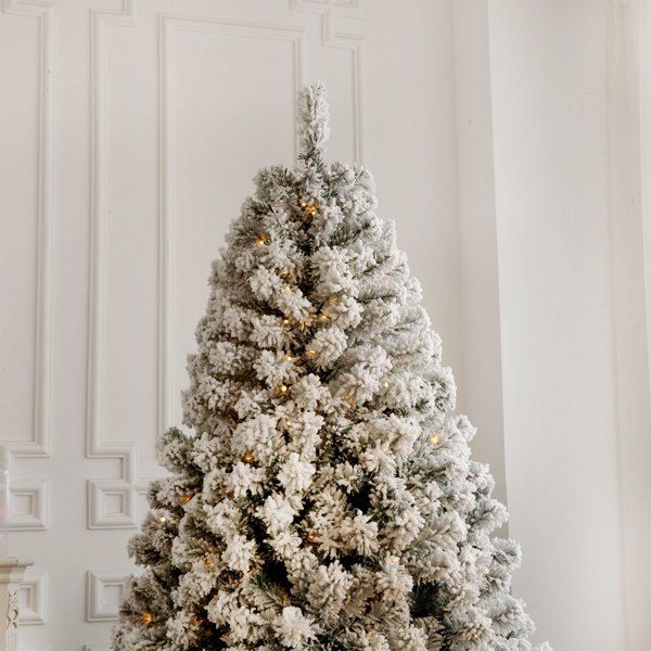 7 foot snow flocked artificial Christmas tree with 1000 branches, 400 lights, and remote control for home or office decoration.
