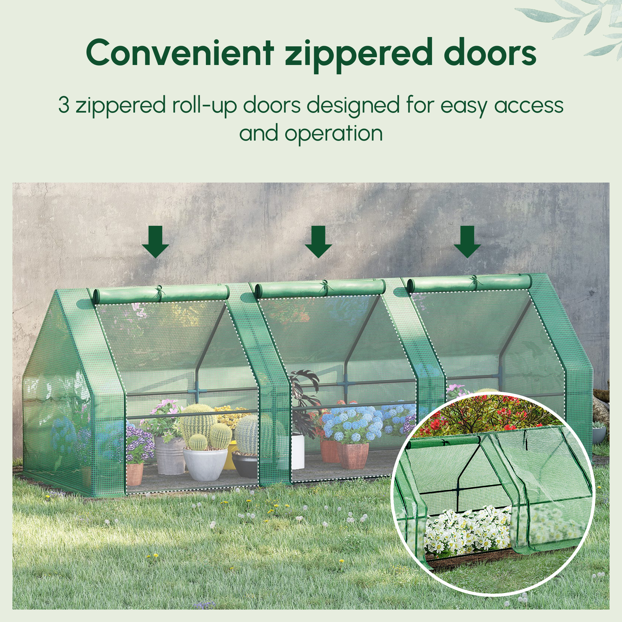 Compact 71″ x 36″ x 28″ portable mini greenhouse featuring large zipper windows for optimal ventilation and plant protection outdoors.
