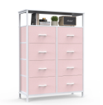 This 8-drawer fabric dresser features a sturdy design with a 45.9-inch height, providing ample storage space for bedroom and closet organization. The unit includes an open shelf for easy access to frequently used items, while the fabric drawers offer lightweight, flexible storage solutions. Its compact footprint makes it suitable for various room sizes, promoting tidiness and maximizing storage efficiency in any living space.
