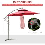 Durable 9-foot 2-tier cantilever umbrella featuring a crank handle for easy adjustment and superior sun protection.