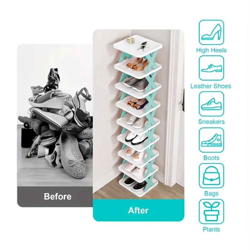 Durable 9-tier shoe rack with steel structure for efficient shoe storage and organization, perfect for homes and closets.
