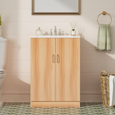 This modern bathroom vanity set combines a sleek ceramic basin with a separate storage cabinet designed to maximize organization. The basin provides a durable, easy-to-clean surface, while the independent cabinet offers ample space to store toiletries and bathroom necessities, keeping the area tidy. Crafted with high-quality materials, the combination set enhances both functionality and style in contemporary bathroom settings.