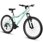 Durable 24/26 inch mountain bike with 21 speeds, front suspension, dual V-brakes, and high-density carbon steel frame, pre-assembled for men, women, and teens.